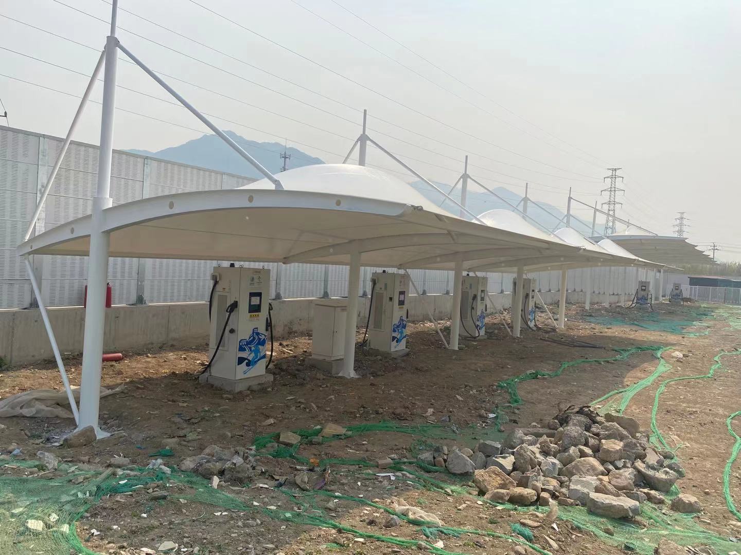 北京昌平區(qū)上店服務(wù)區(qū)進京方向充電樁膜結(jié)構(gòu)雨棚充電站膜結(jié)構(gòu)防雨棚